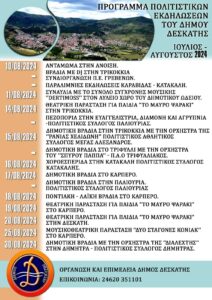 Γρεβενα Πρόγραμμα Πολιτιστικών Εκδηλώσεων του Δήμου Δεσκάτης Ιούλιος-Αύγουστος 2024 11 Ιουλίου 2024 18.73K Views .