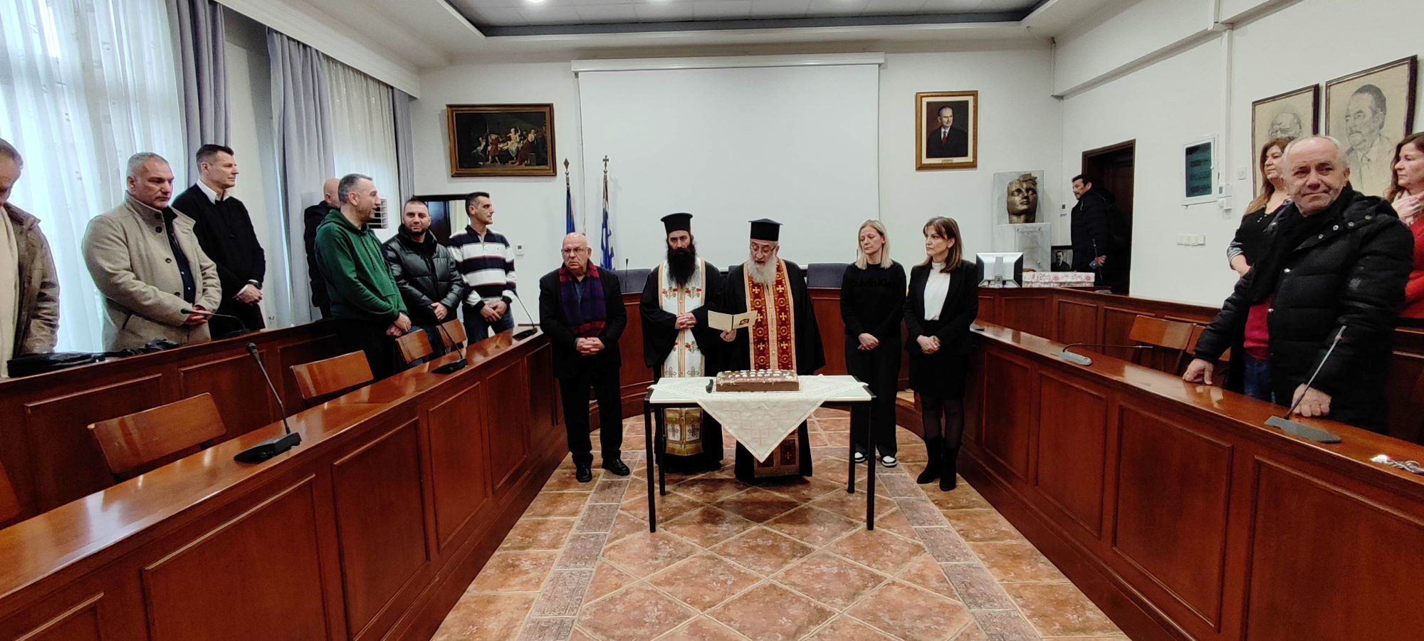 Την πίτα έκοψε ο Δήμαρχος, Κυριάκος Ταταρίδης, στην αίθουσα συνεδριάσεων του Δημοτικού Συμβουλίου, παρουσία της Γ.Γ. του Δήμου, της Προέδρου του Δημοτικού Συμβουλίου, Αντιδημάρχων, Δημοτικών Συμβούλων, ειδικών συνεργατών και του συνόλου των δημοτικών υπαλλήλων