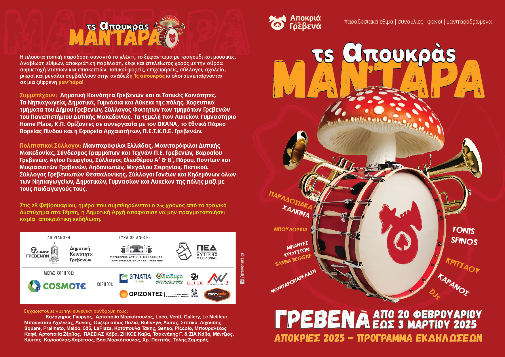 Τς Απουκράς Μαν΄τάρα: Το κέφι “εκτοξεύεται” με Τόνι Σφίνο, τον…Γάμο των Λυκείων, Μανιταρογλέντι και Μπουλούκια