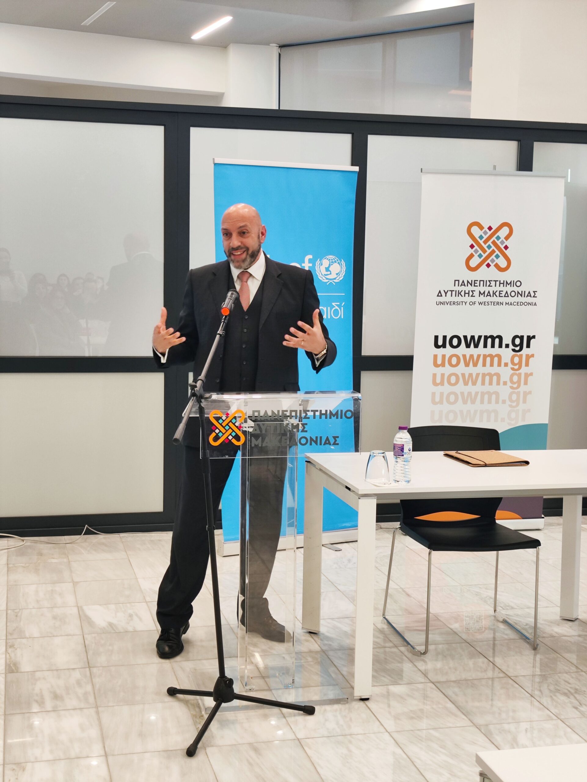 “Είμαι ιδιαίτερα χαρούμενος και συγχαίρω το Πανεπιστήμιο Δυτικής Μακεδονίας για την ίδρυση του Κέντρου για τα Δικαιώματα του Παιδιού. Με αυτή την πρωτοβουλία, το Πανεπιστήμιο εντάσσεται σε ένα δίκτυο ακαδημαϊκών ιδρυμάτων στην Ελλάδα και διεθνώς, συμβάλλοντας ενεργά στην προώθηση και ενίσχυση των δικαιωμάτων των παιδιών. Η UNICEF θα συνεργαστεί στενά με το Πανεπιστήμιο, διασφαλίζοντας ότι κάθε παιδί απολαμβάνει τα δικαιώματά του. Η ίδρυση του Κέντρου θα έχει αναμφίβολα θετικό αντίκτυπο στη ζωή των παιδιών και στην κοινωνία συνολικά.”