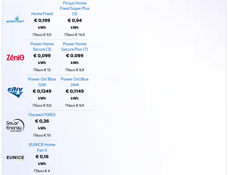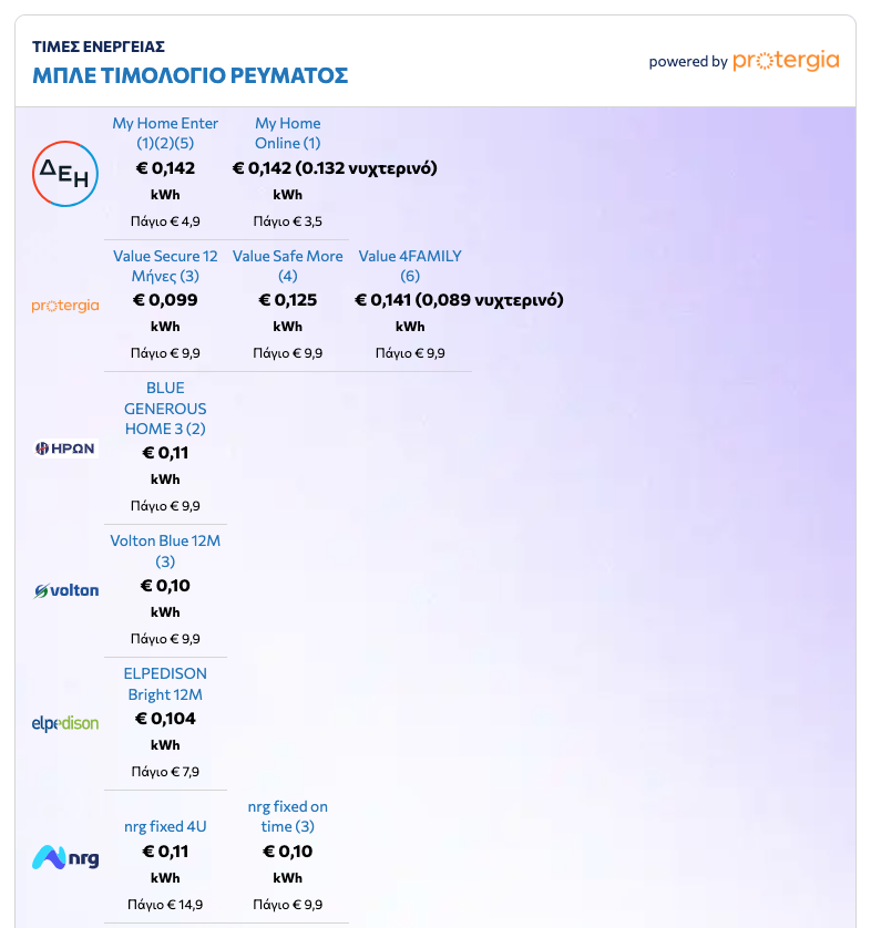 Τα μπλε τιμολόγια ρεύματος σήμερα