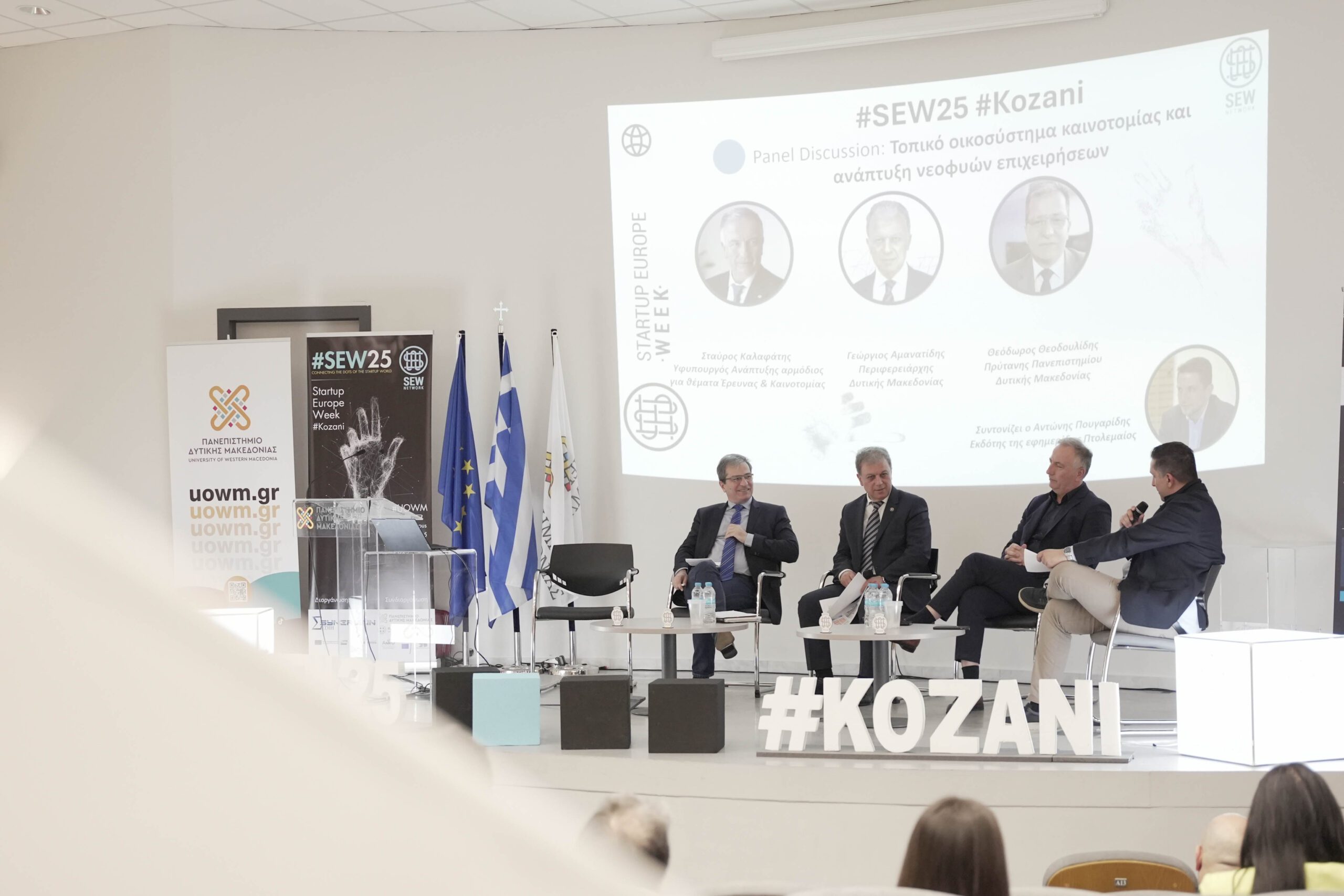 Η Startup Europe Week επέστρεψε στην Κοζάνη για δεύτερη συνεχή χρονιά, στο χώρο του Πανεπιστημίου Δυτικής Μακεδονίας, το απόγευμα της Δευτέρας 12 Μαΐου 2025, με στόχο την προώθηση της καινοτομίας και της επιχειρηματικότητας σε τοπικό, εθνικό και ευρωπαϊκό επίπεδο. Η εκδήλωση εντάχθηκε στο πλαίσιο της Πράξης «Κόμβος Ψηφιακής Καινοτομίας Δυτικής Μακεδονίας – SYNERGiNN EDIH» και υλοποιήθηκε με συνδιοργανωτές το Πανεπιστήμιο Δυτικής Μακεδονίας, την Περιφέρεια Δυτικής Μακεδονίας, την ΑΝΚΟ ΑΕ / Enterprise Europe Network και το Ε.Β.Ε. Κοζάνης.