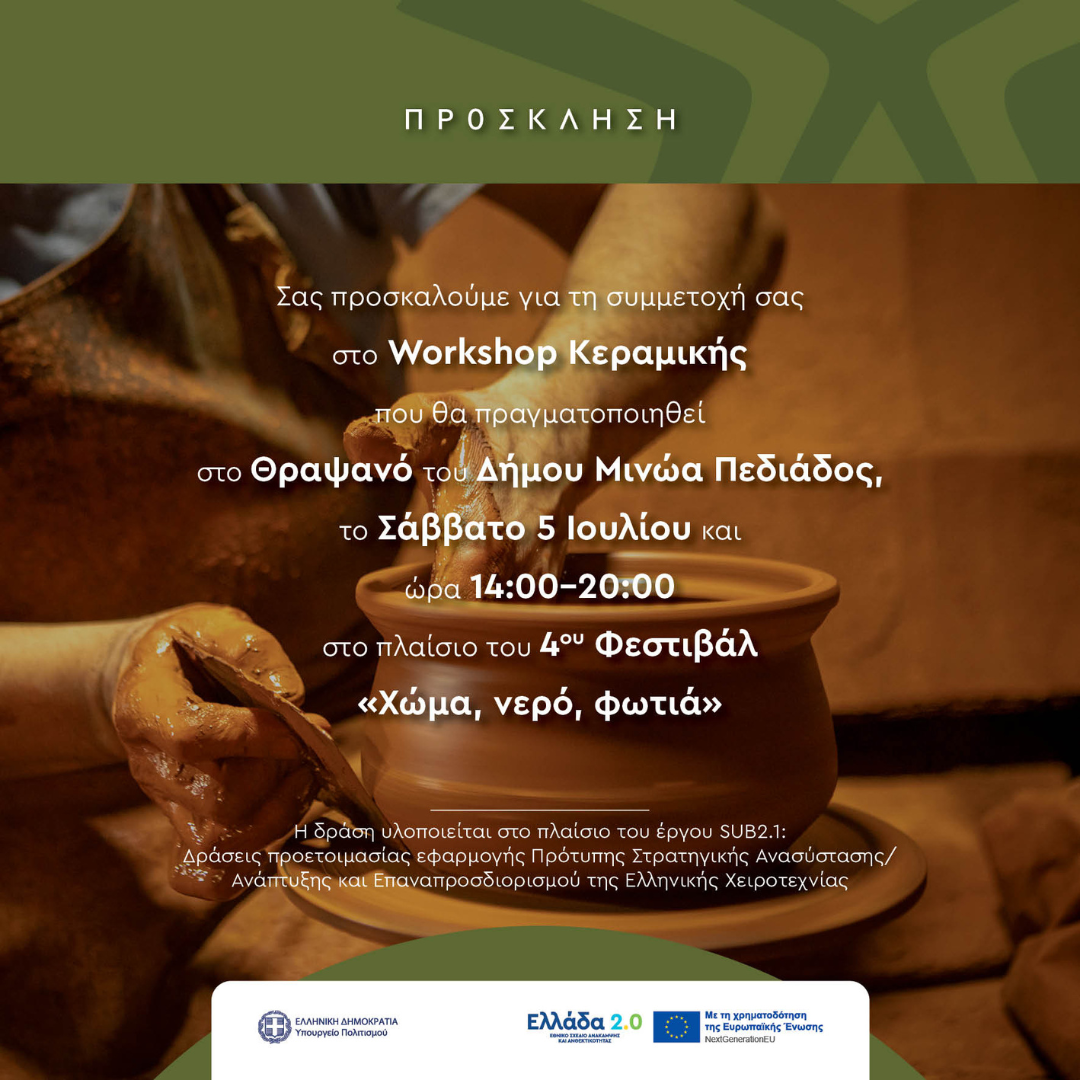 Πιλοτικό Εκπαιδευτικό Πρόγραμμα Κ.Ε.ΔΙ.ΒΙ.Μ/ ΠΔΜ για την ανάπτυξη δεξιοτήτων που σχετίζονται με τη χειροτεχνία Workshops Κεραμικής και Υφαντικής Τέχνης