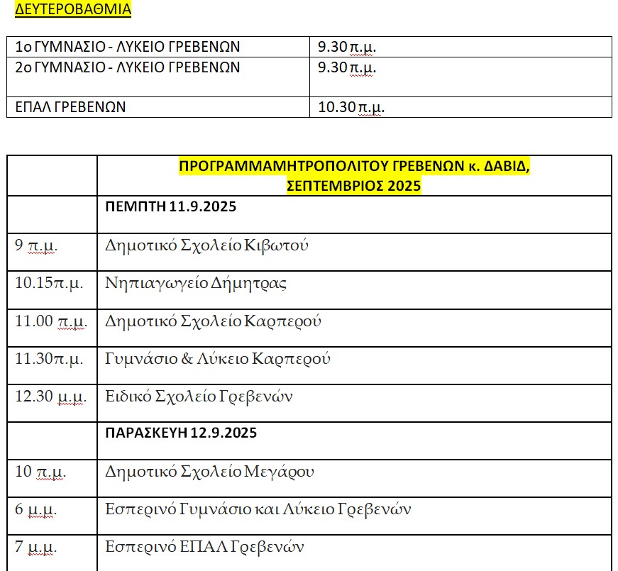 Γρεβενα Οι Αγιασμοί των Σχολικών Μονάδων: Έναρξη της νέας σχολικής χρονιάς 8 Σεπτεμβρίου 2025 4.65K Views