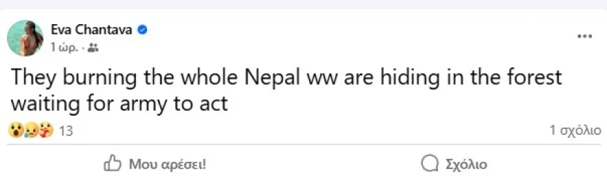Ωστόσο, λίγες ημέρες μετά την άφιξή της, η χώρα βυθίστηκε στο χάος. Ογκώδεις διαδηλώσεις κατά της διαφθοράς και της απαγόρευσης πρόσβασης στα social media οδήγησαν σε πρωτοφανείς συγκρούσεις, δεκάδες νεκρούς και τελικά στην παραίτηση του πρωθυπουργού Όλι.