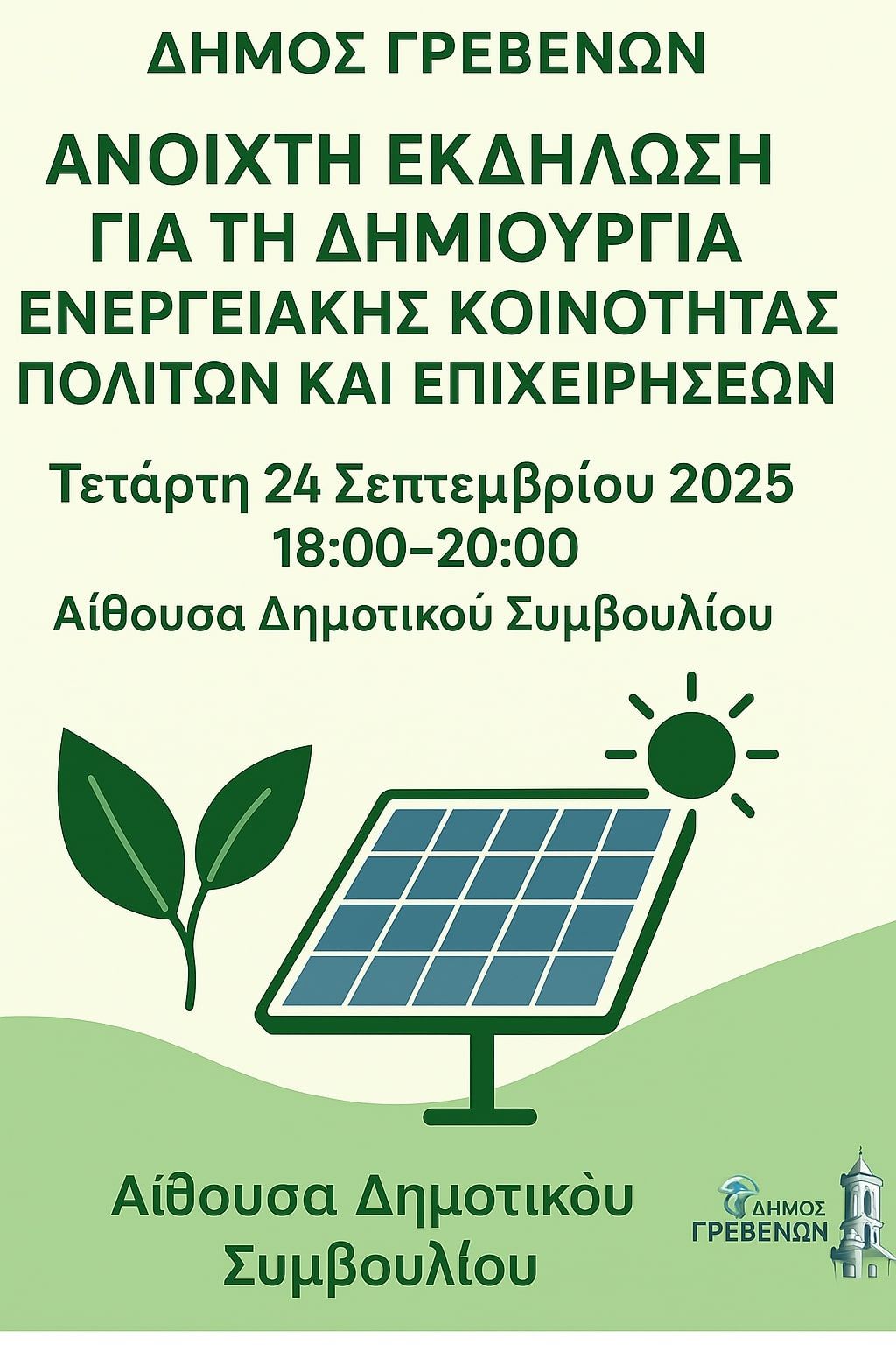 Ο Δήμος Γρεβενών σε τροχιά ίδρυσης της Ενεργειακής Κοινότητας των πολιτών του – την Τετάρτη 24 Σεπτεμβρίου 2025