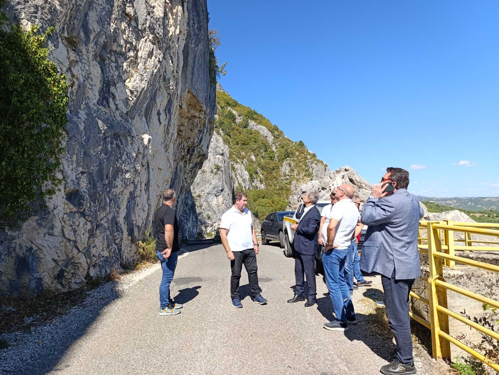 Ακολούθησε η επίσκεψη στο Φαράγγι της Πορτίτσας και στο ολοκληρωμένο πλέον τμήμα του οδικού άξονα που συνδέει το Σπήλαιο με το εμβληματικό Πέτρινο Γεφύρι. Πλέον η διέλευση των οχημάτων πραγματοποιείται με έναν συνολικά ασφαλτοστρωμένο δρόμο καθώς ολοκληρώθηκαν οι εργασίες και στο μέχρι πρότινος χωμάτινο τμήμα μήκους 1,3χλμ.