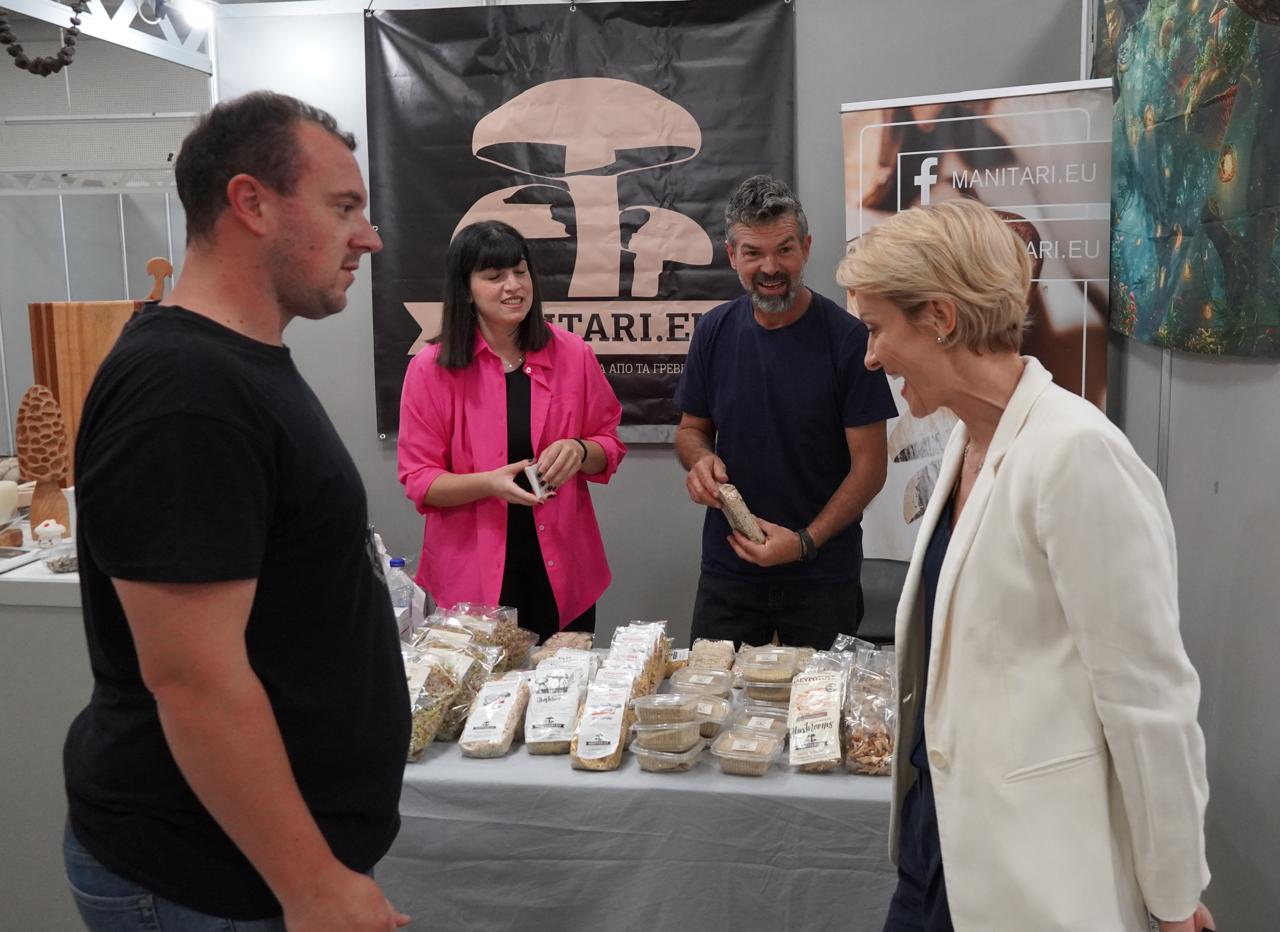 Η Αλεξάνδρα Σδούκου επισκέφτηκε την έκθεση γρεβενιώτικων προϊόντων που φιλοξενείται στην Αίθουσα Πολλαπλών Χρήσεων του σταθμού Σύνταγμα, όπου παρουσιάζονται μανιτάρια, μέλι, όσπρια, ζυμαρικά, τσάι του βουνού, λεβάντα και άλλες τοπικές γεύσεις.