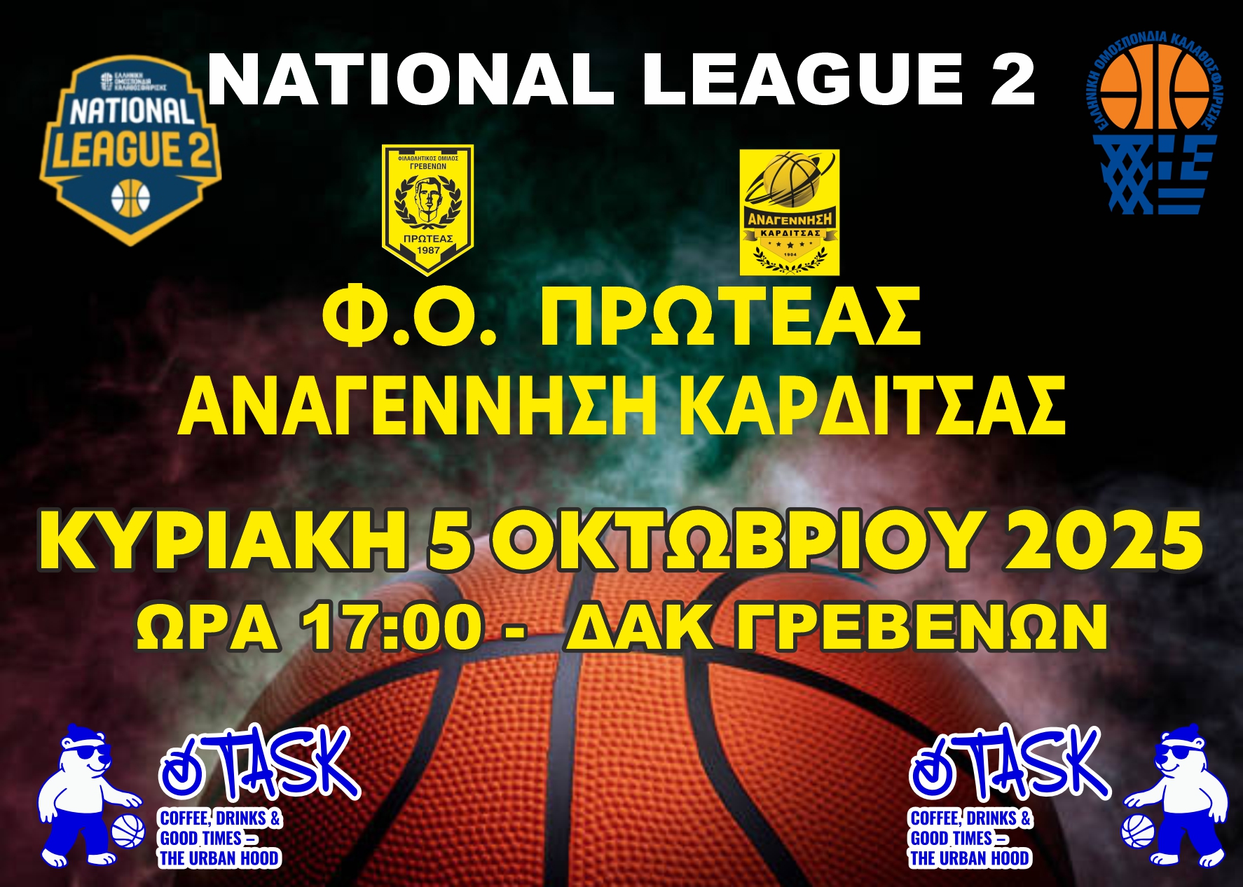 Την Αναγέννηση Καρδίτσας θα αντιμετωπίσει ο Φ.Ο. Πρωτέας Γρεβενών την Κυριακή 5 Οκτωβρίου και ώρα 17:00 στο ΔΑΚ Γρεβενών, για την πρεμιέρα της National League 2.