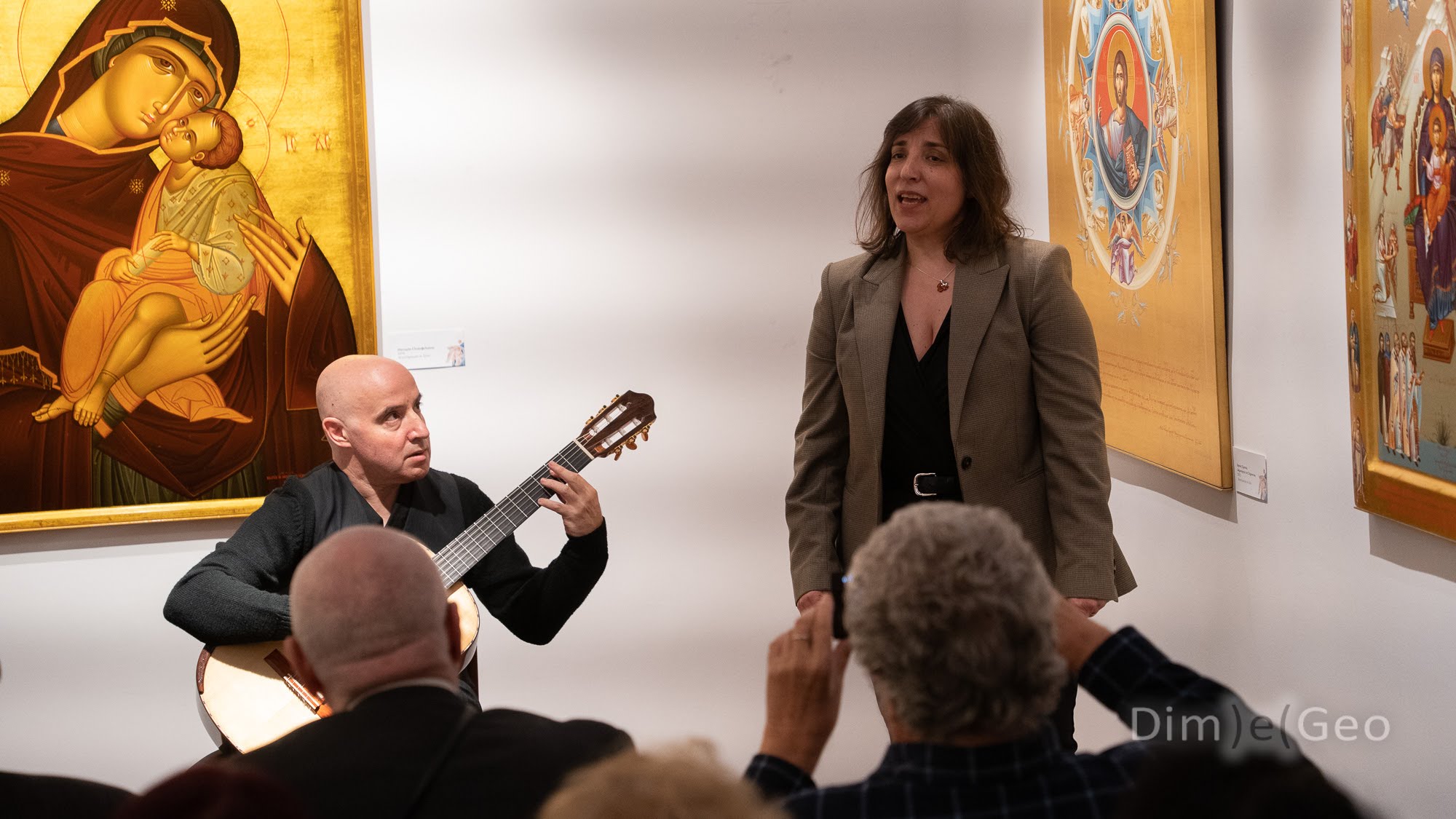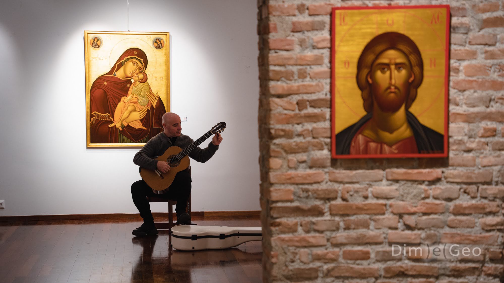 • Στο τρίτο μέρος στο χώρο της έκθεσης, ανάμεσα στα έργα του πατέρα του, ο γιός του αγιογράφου, Νικόλαος Μπαλογιάννης έκλεισε μουσικά τη βραδιά, με ένα μοναδικό ρεσιτάλ κιθάρας, ενώ η κόρη του αγιογράφου, Ευαγγελία Μπαλογιάννη και οι επισκέπτες-θεατές στο τέλος τραγούδησαν παρέα, δημιουργώντας ένα βαθύ αίσθημα συγκίνησης και ευφορίας!