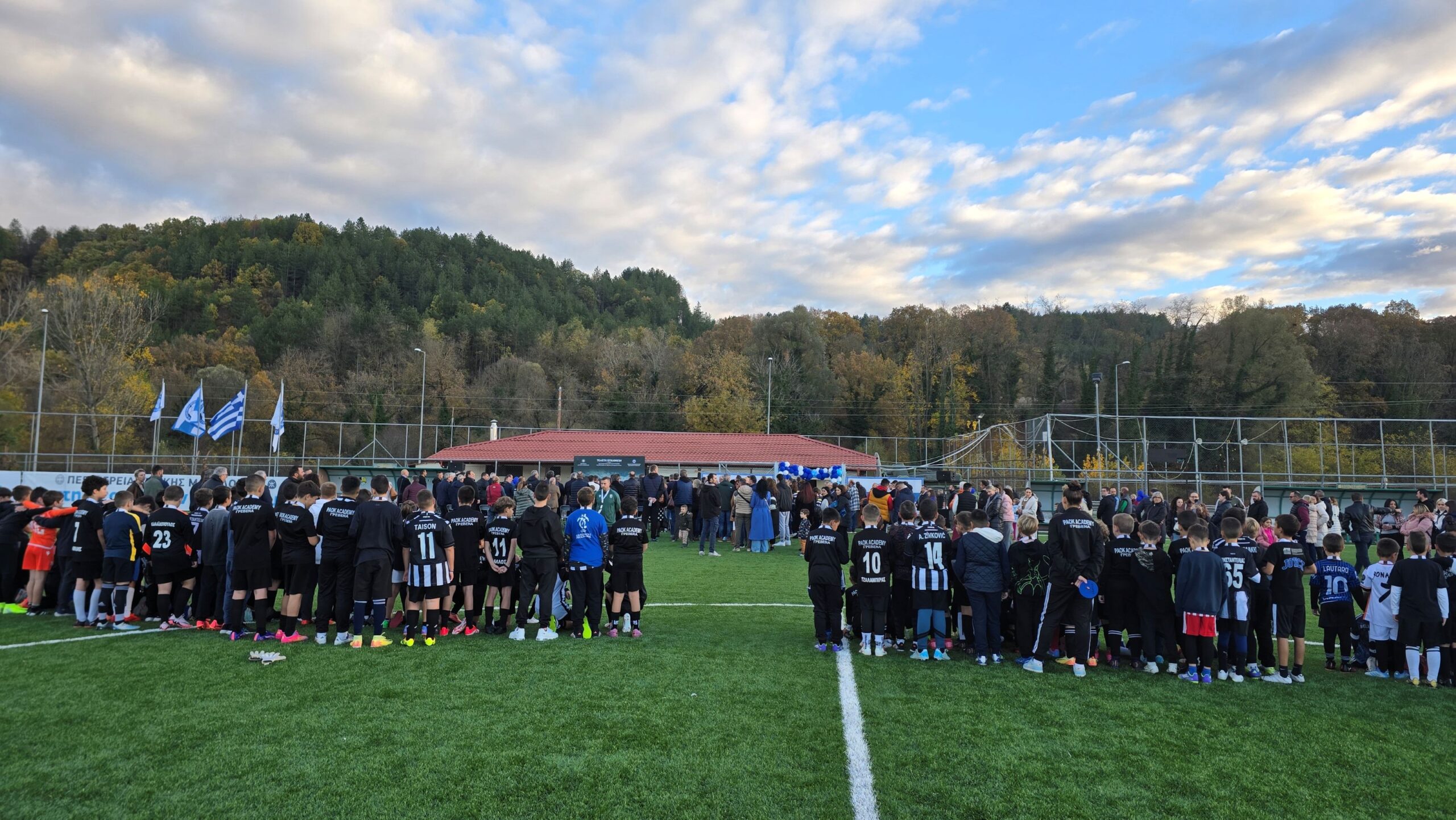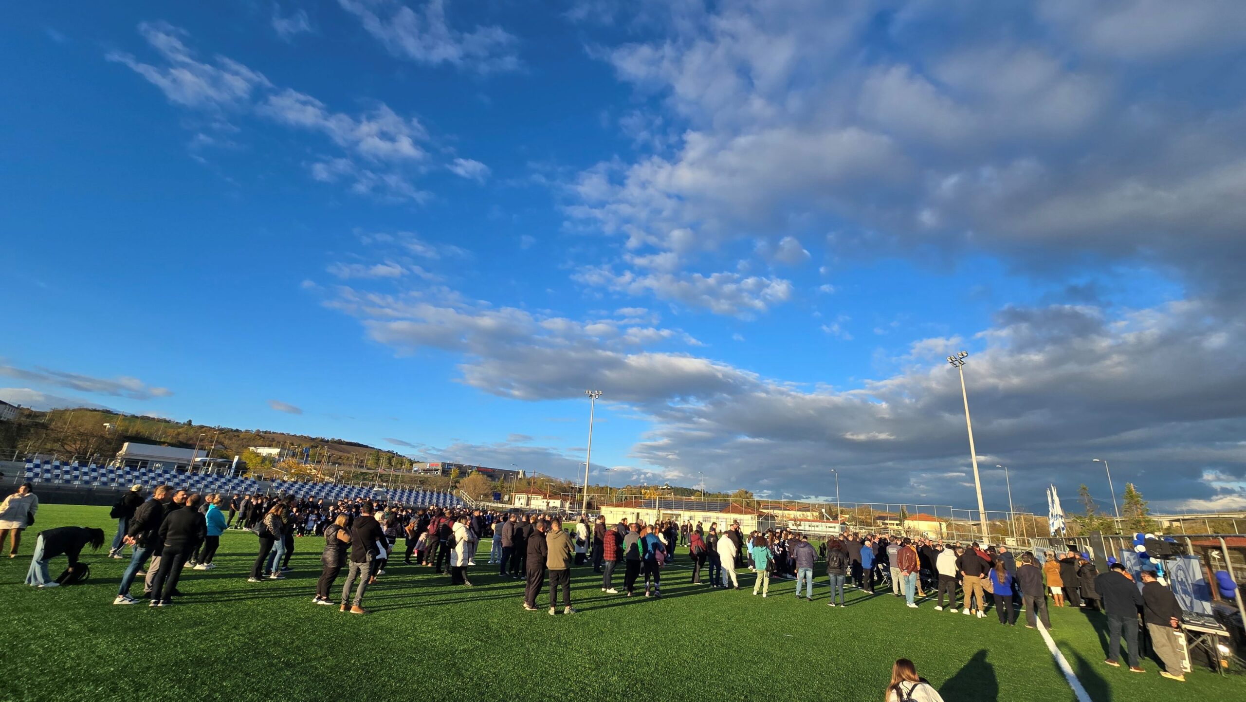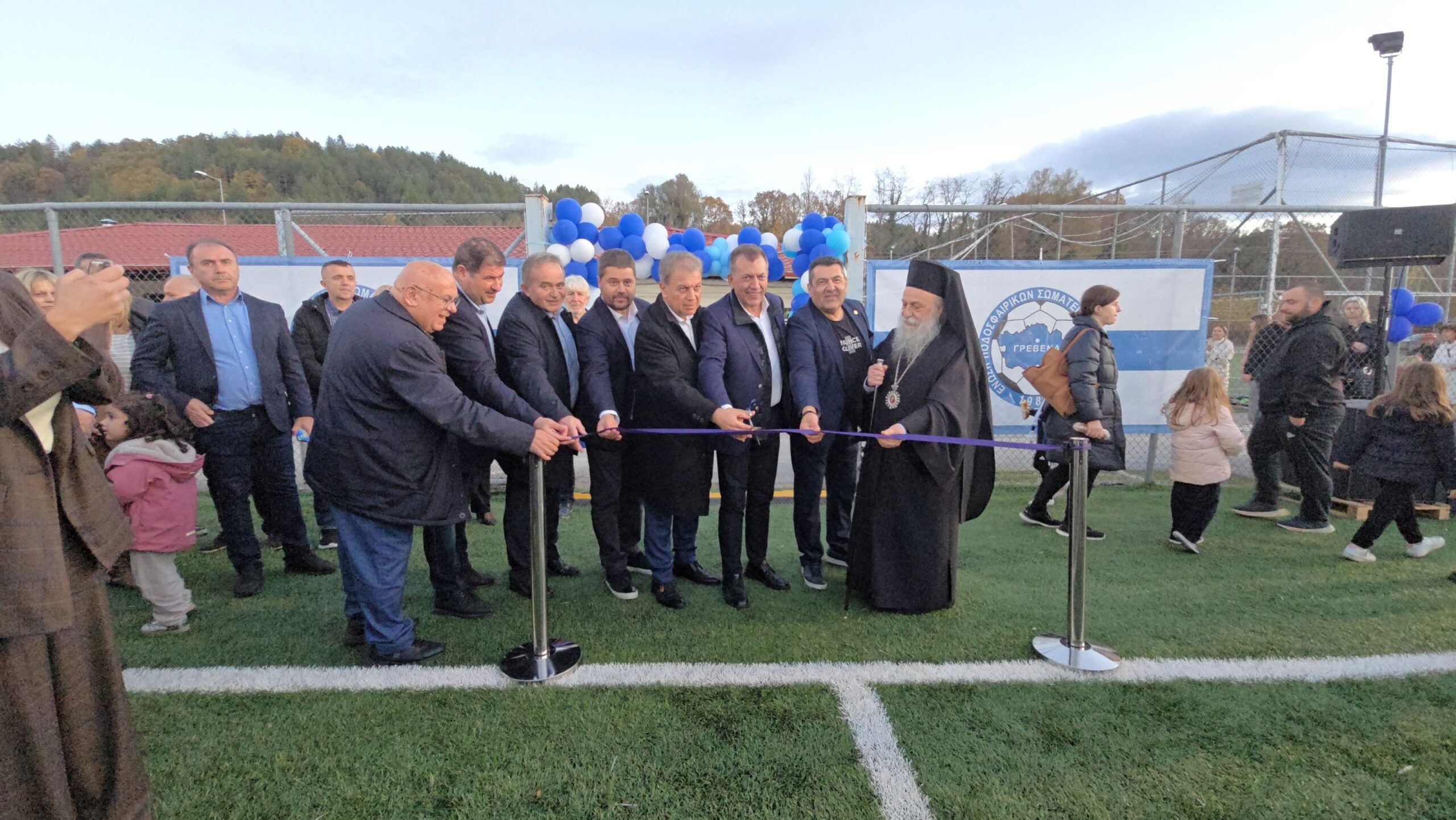Οι πύλες του ανακαινισμένου σταδίου άνοιξαν για μικρούς και μεγάλους, με τις ευλογίες του Σεβασμιωτάτου Μητροπολίτη Γρεβενών κ. Δαυίδ, το απόγευμα της Τρίτης 11 Νοεμβρίου στην εκδήλωση που διοργάνωσε η ΕΠΣ Γρεβενών με την συνδρομή της Περιφέρειας Δυτικής Μακεδονίας, παρουσία του Βουλευτή Γρεβενών Αθανάσιου Σταυρόπουλου, των Δημάρχων Γρεβενών Κυριάκου Ταταρίδη, Δεσκάτης Δημήτρη Κόττα, Σερβίων Χρήστου Ελευθερίου, Βοΐου Χρήστου Ζευκλή, των Αντιπεριφερειαρχών Π.Ε. Γρεβενών Γιάννη Τσακνάκη, Αγροτικής Ανάπτυξης Πασχάλη Χαρούμενου, του Εντεταλμένου Συμβούλου Ενέργειας Γιάννη Παναγιωτίδη, του Περιφερειακού Συμβούλου Γιώργου Γεωργίτση, του Προέδρου της Ελληνικής Ποδοσφαιρικής Ομοσπονδίας Χρυσόστομου Γκαγκάτση, 15 Προέδρων Ποδοσφαιρικών Ενώσεων από όλη τη χώρα, μελών αθλητικών συλλόγων, αθλητών, προπονητών και γονέων.