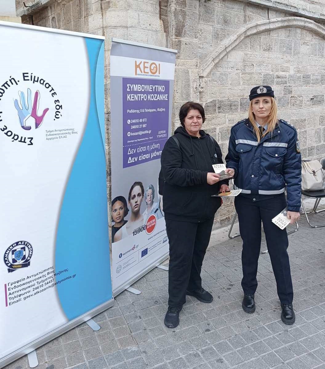 Συγκεκριμένα, πρωινές ώρες σήμερα (25-11-2025) σε κεντρικά σημεία των πόλεων Κοζάνης, Καστοριάς και Άργους Ορεστικού, αστυνομικοί των Γραφείων Αντιμετώπισης Ενδοοικογενειακής Βίας των Αστυνομικών Τμημάτων Κοζάνης και Καστοριάς, αντίστοιχα, και αστυνομικοί του Αστυνομικού Τμήματος Άργους Ορεστικού Καστοριάς, σε συνεργασία με την επιτροπή ισότητας του Δήμου Άργους Ορεστικού, διένειμαν σε διερχόμενους πολίτες σχετικό έντυπο ενημερωτικό υλικό, για την πρόληψη και την αντιμετώπιση περιστατικών βίας κατά των γυναικών.