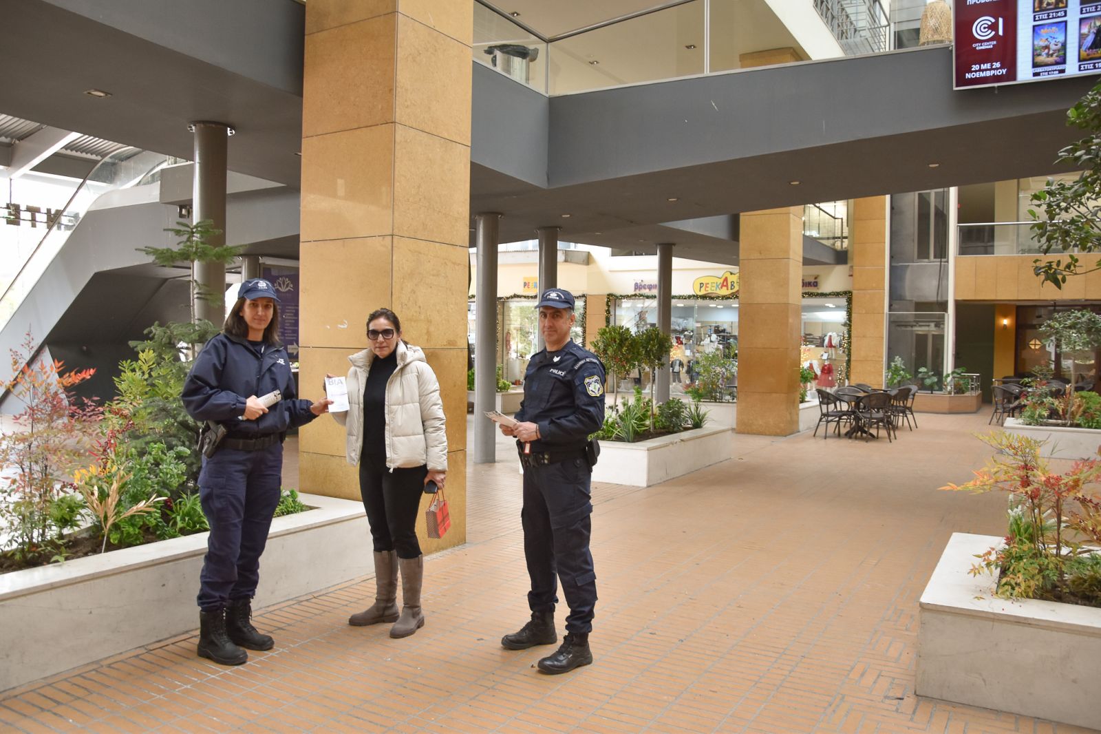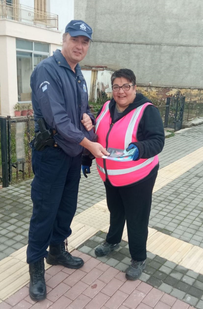 Διανεμήθηκαν σε πολίτες ενημερωτικά φυλλάδια με συμβουλευτικό περιεχόμενο για την πρόληψη και την αντιμετώπιση περιστατικών βίας κατά των γυναικών.