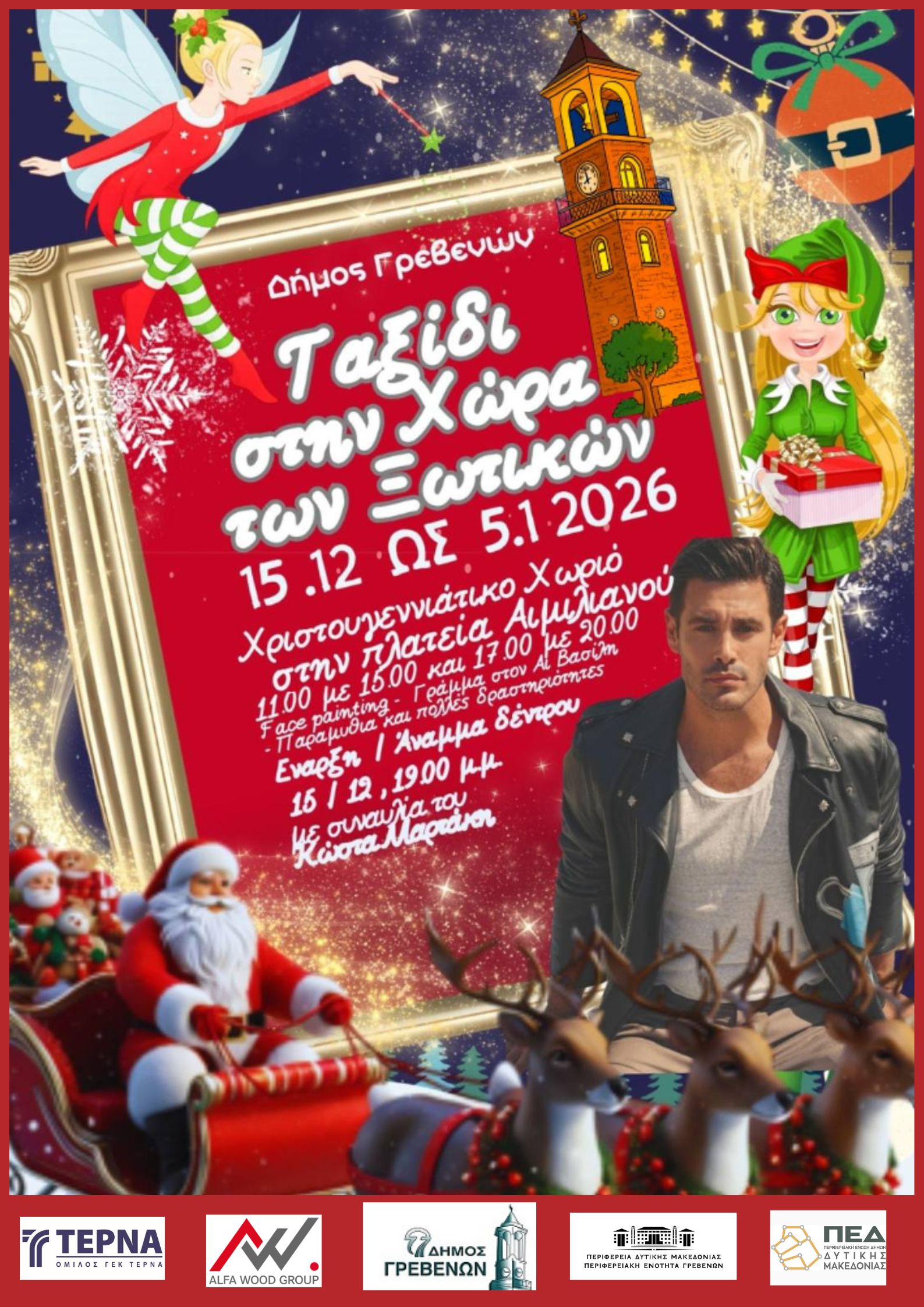 Φέτος τα Γρεβενά πλημμυρίζουν φως και προσμονή, ανοίγοντας την πιο λαμπερή σελίδα των Χριστουγέννων. Ο Δήμος Γρεβενών, σε συνεργασία με την Π.Ε. Γρεβενών και την ΠΕΔ Δυτικής Μακεδονίας, παρουσιάζει ένα αναβαθμισμένο, λαμπερό και βαθιά παιδοκεντρικό πρόγραμμα εορταστικών εκδηλώσεων , ένα «ΤΑΞΙΔΙ ΣΤΗ ΧΩΡΑ ΤΩΝ ΞΩΤΙΚΩΝ»!!!
