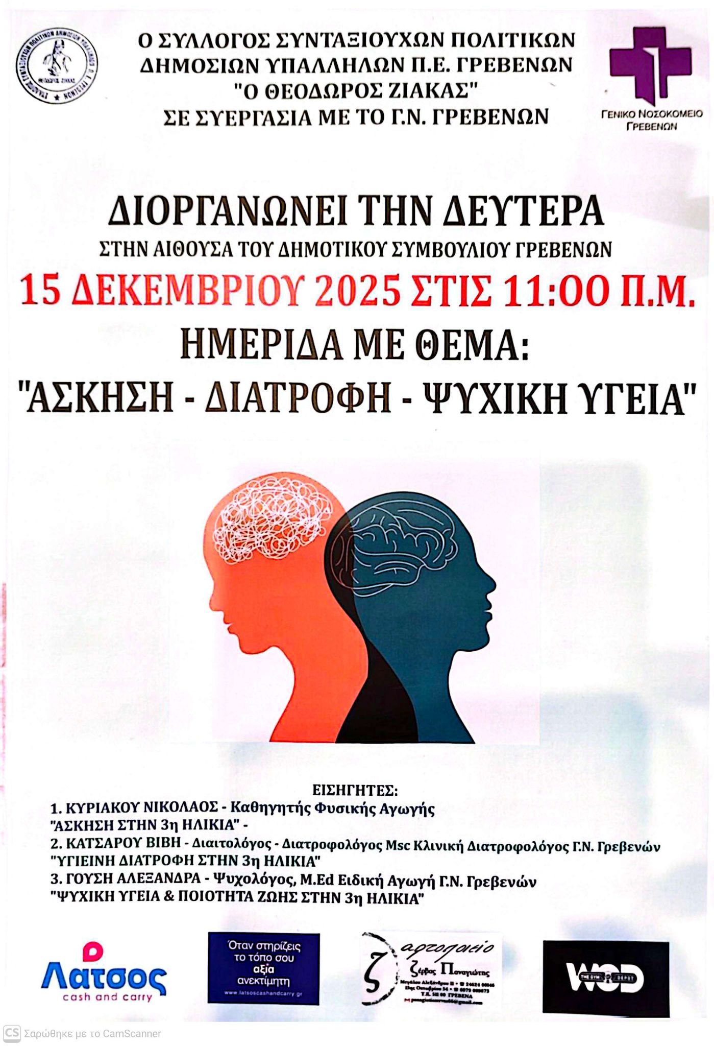 Η εκδήλωση υλοποιείται σε συνεργασία με τον Σύλλογο Συνταξιούχων Πολιτικών Δημοσίων Υπαλλήλων Π.Ε. Γρεβενών «Ο Θεόδωρος Ζιάκας».