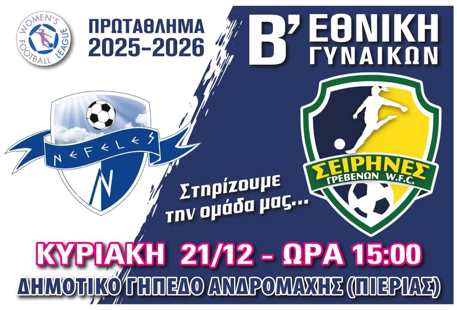 Σειρήνες Γρεβενών: Νέο ραντεβού εκτός έδρας με τις Νεφέλες Πιερίας – την Κυριακή 21 Δεκεμβρίου