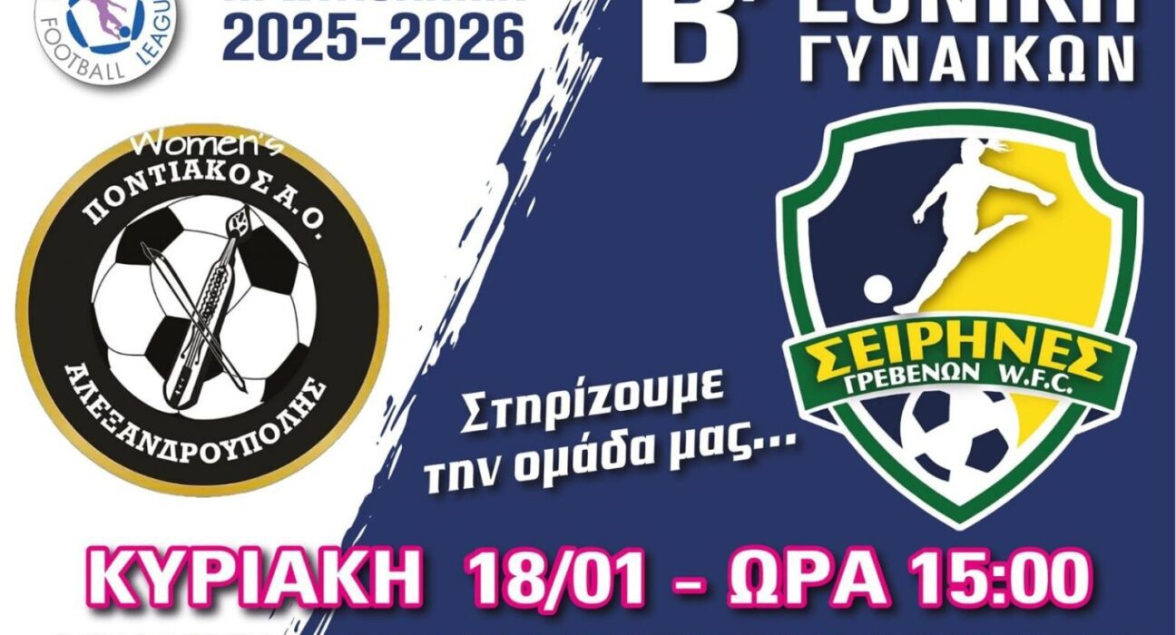 Η ποδοσφαιρική ομάδα Σειρήνες Γρεβενών ετοιμάζεται για έναν ακόμη εκτός έδρας αγώνα, αυτή τη φορά στην Αλεξανδρούπολη, όπου θα αντιμετωπίσει τον Ποντιακό Α.Ο. Το παιχνίδι θα διεξαχθεί την Κυριακή στις 15:00 στο γήπεδο «Φώτης Κοσμάς».