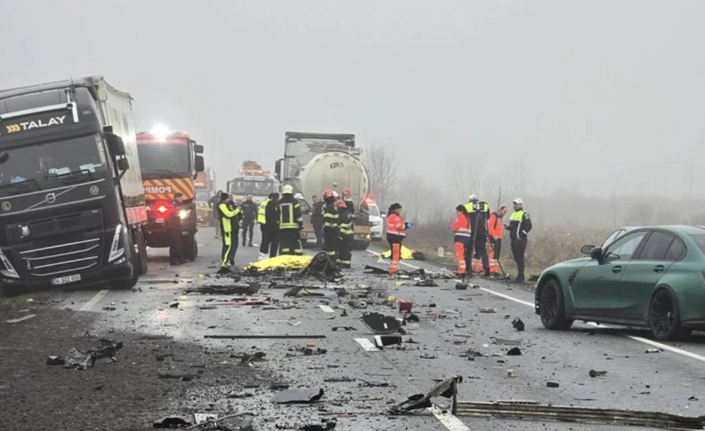 Λίγο πριν από τη μία όμως το μεσημέρι στον αυτοκινητόδρομο DN6 – E70, έναν από τους βασικούς οδικούς άξονες της περιοχής, λίγα χιλιόμετρα μετά την Καρασέβες, ο χρόνος πάγωσε. Κατά τη διάρκεια προσπέρασης, το όχημα βγήκε στο αντίθετο ρεύμα και συγκρούστηκε μετωπικά με νταλίκα. Η σύγκρουση ήταν σφοδρή, με αποτέλεσμα το βαν να διαλυθεί.