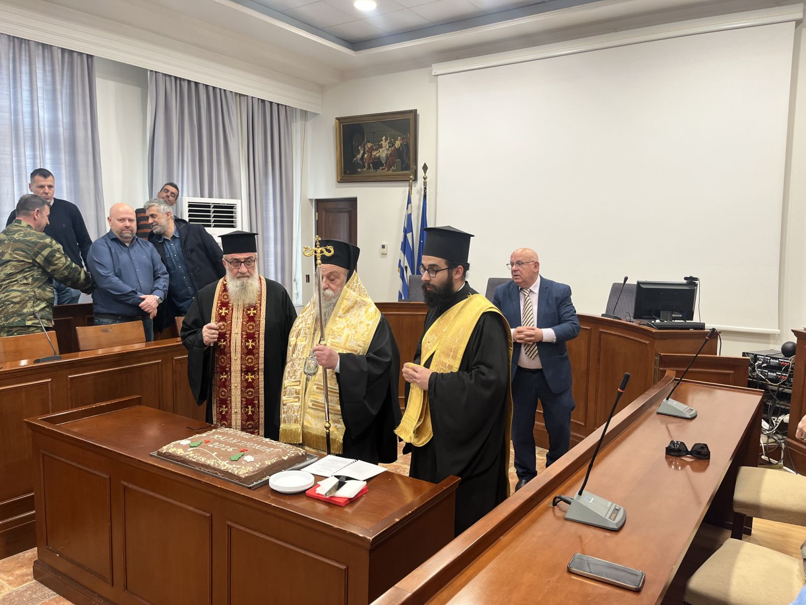Σε μια λιτή αλλά ουσιαστική συνάντηση, με κύριο χαρακτηριστικό το πνεύμα συνεργασίας και αμοιβαίου σεβασμού, πραγματοποιήθηκε η κοπή της Πρωτοχρονιάτικης Πίτας των εργαζομένων του Δήμου Γρεβενών. Η τελετή έλαβε χώρα στην αίθουσα συνεδριάσεων του Δημοτικού Συμβουλίου, παρουσία των δημοτικών υπαλλήλων, των αιρετών και του Σεβασμιώτατου Μητροπολίτη Γρεβενών κ.κ. Δαβίδ, ο οποίος και ευλόγησε την εκδήλωση.