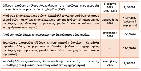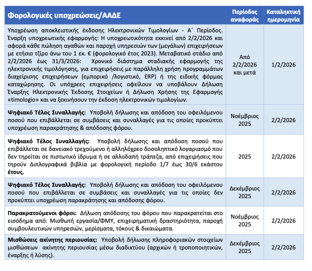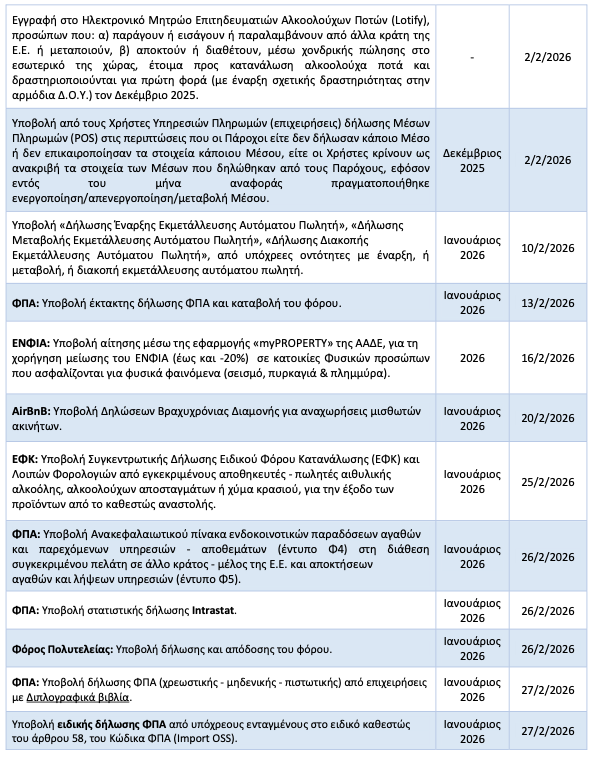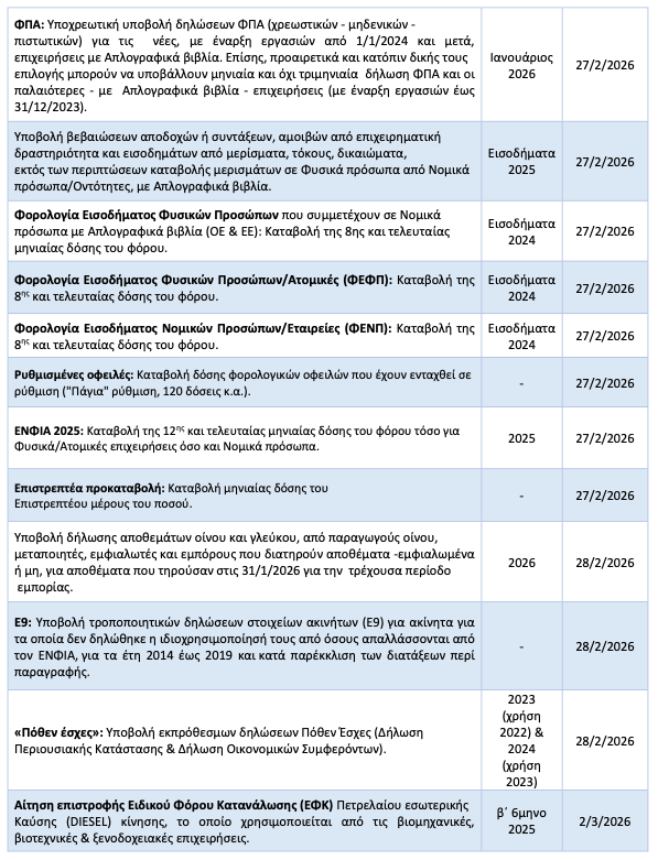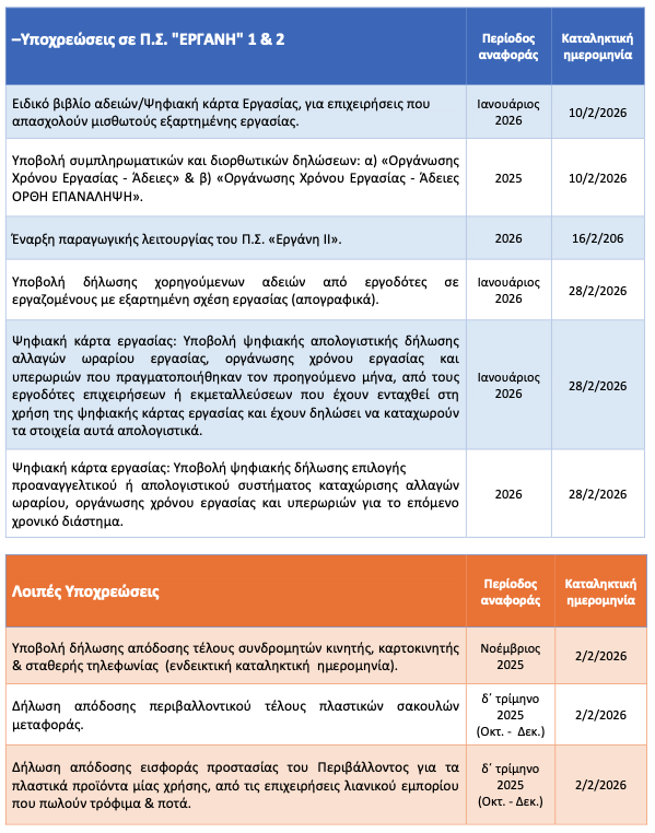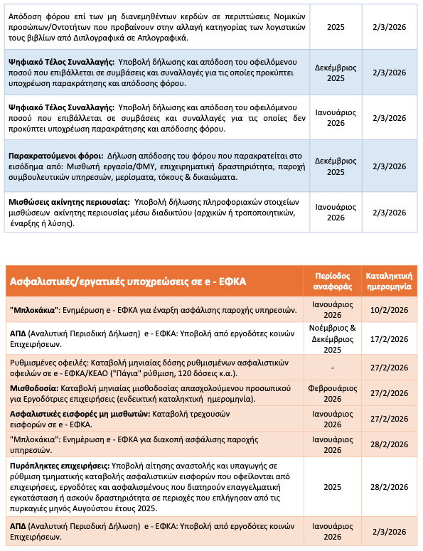 Εμπορικός Σύλλογος Γρεβενών: Κυριότερες υποχρεώσεις Εμπορικών επιχειρήσεων Φεβρουάριος 2026