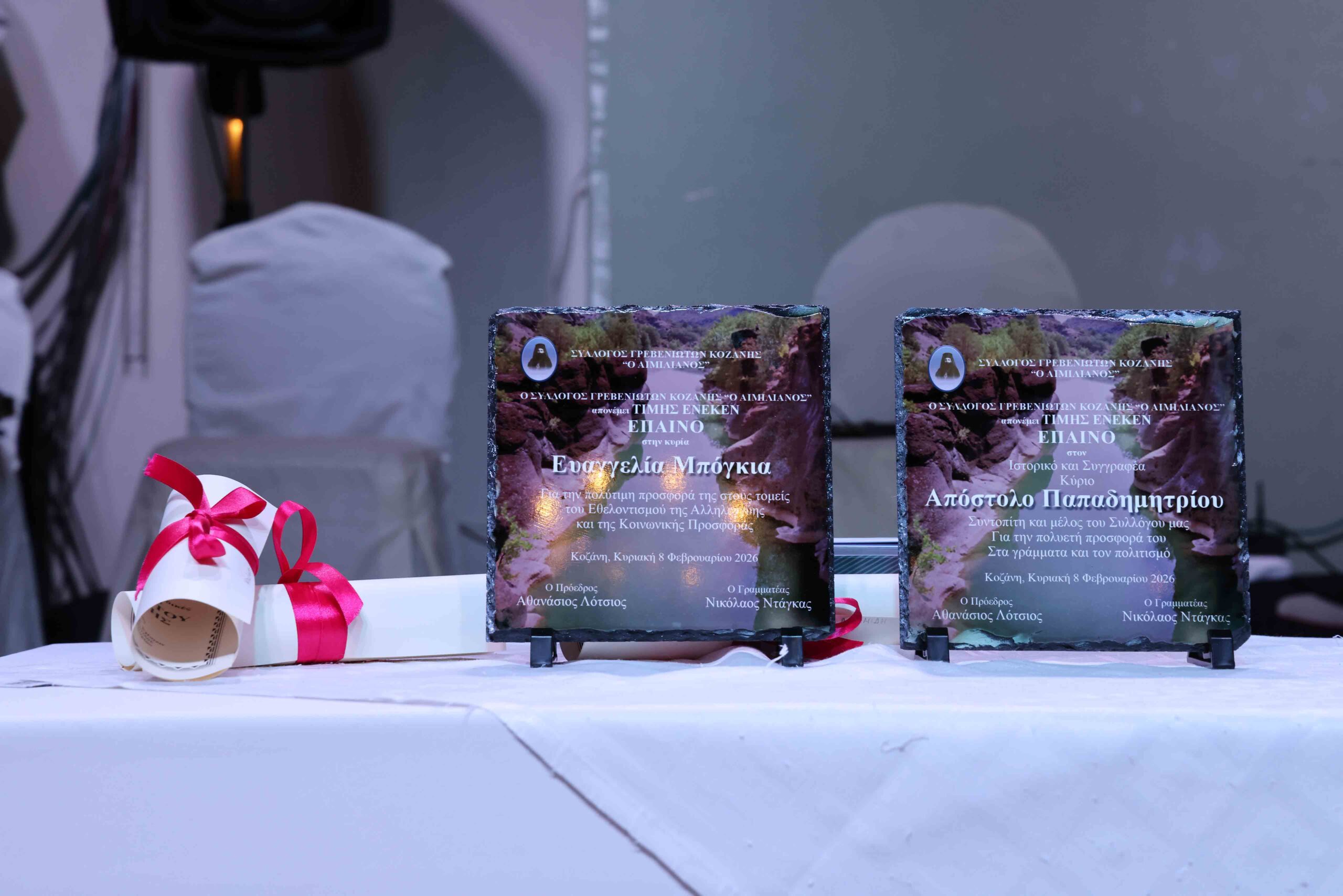 Ο κ. Παπαδημητρίου Απόστολος Ιστορικός Ερευνητής και Συγγραφέας με τεράστιο έργο στην τοπική ιστορία της ευρύτερης περιοχής της Δυτ. Μακεδονίας, η κα Μπόγια Ευαγγελία πρόεδρος του Συλλόγου Αλληλεγγύης και Εθελοντισμού Γρεβενών ΕΛΠΙΔΑ, η κα Παπαργύρη Λαμπρινή για την επιλογή της από φημισμένο Πανεπιστήμιο Στάνφορντ Καλιφόρνιας της Αμερικής ως μεταδιδακτορική επιστημονική συνεργάτης η μοναδική από την Ευρώπη και επιτυχόντες φοιτητές των πανελλαδικών εξετάσεων 2025 στην Τριτοβάθμια Εκπαίδευσης, γρεβενιώτικης καταγωγής που μένουν στο νομό Κοζάνης.