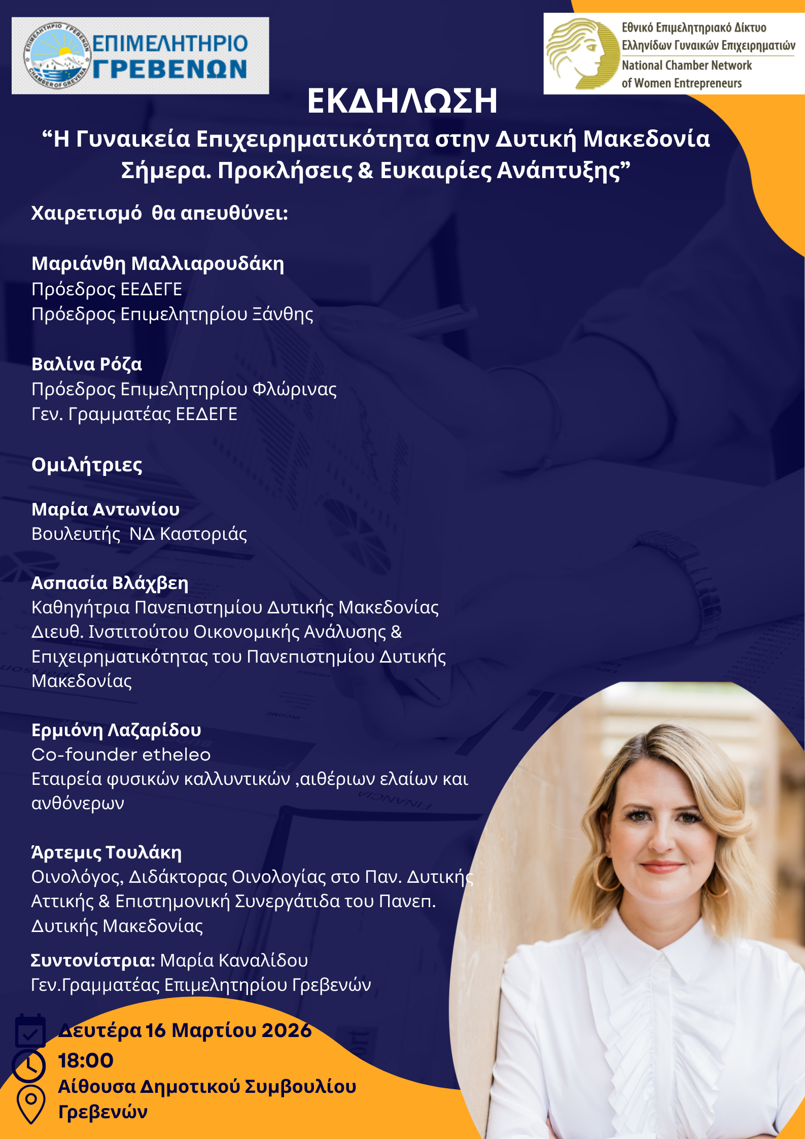 Επιμελητήριο Γρεβενών: Εκδήλωση με θέμα “Η Γυναικεία Επιχειρηματικότητα στην Περιφέρεια Δυτικής Μακεδονίας Σήμερα. Προκλήσεις και Ευκαιρίες Ανάπτυξης” – τη Δευτέρα 16 Μαρτίου
