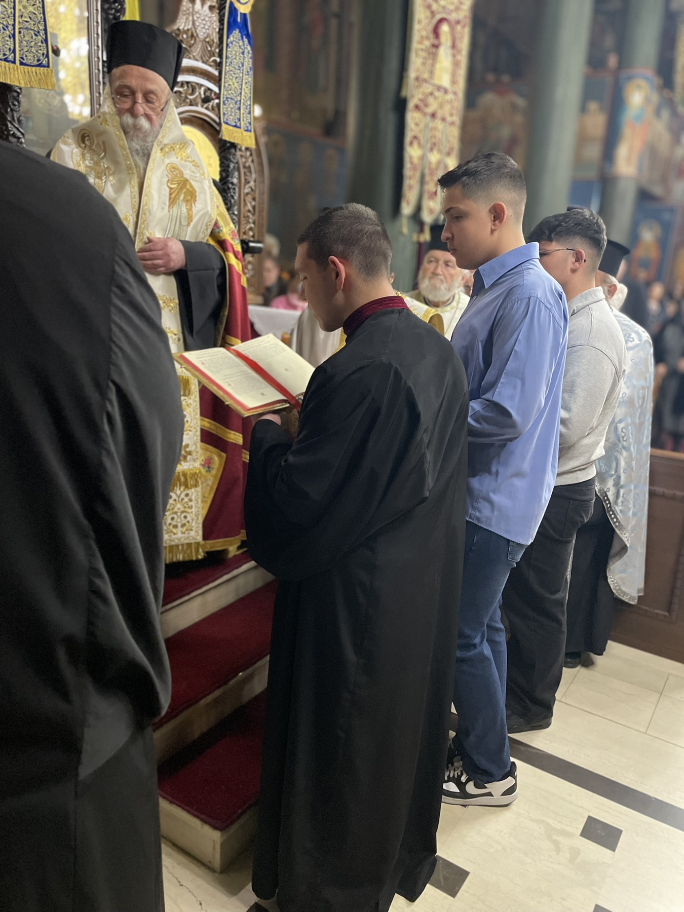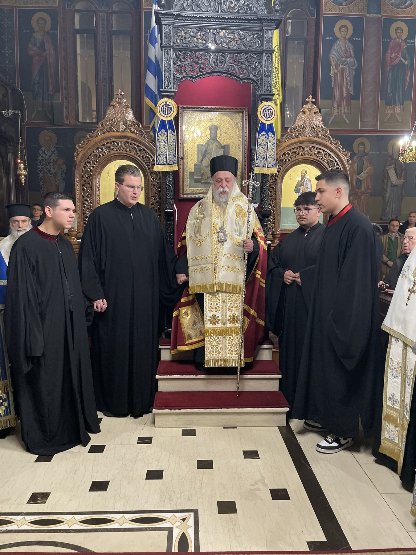 Του πανηγυρικού Εσπερινού, καθώς και της πανηγυρικής Θείας Λειτουργίας, προεξήρχε ο Σεβασμιώτατος Μητροπολίτης Γρεβενών κ. Δαβίδ. Κατά τον Εσπερινό, ο Σεβασμιώτατος προέβη στη χειροθεσία τεσσάρων εκλεκτών βλαστών της τοπικής μας Εκκλησίας εις Αναγνώστες, οι οποίοι είναι μαθητές της Σχολής Βυζαντινής Μουσικής της Ιεράς Μητροπόλεώς μας και διακονούν με ζήλο τα ιερά αναλόγια. Απευθυνόμενος προς αυτούς, τους προέτρεψε να συνεχίσουν με τον ίδιο ζήλο την υμνωδία προς τον Θεό, ώστε να αναδειχθούν σε καλούς χριστιανούς και ενάρετους πολίτες της κοινωνίας. Μετά το πέρας του Εσπερινού, ακολούθησε μεγαλοπρεπής λιτανεία της ιεράς εικόνος του Ευαγγελισμού,στους κεντρικούς δρόμους της πόλεως