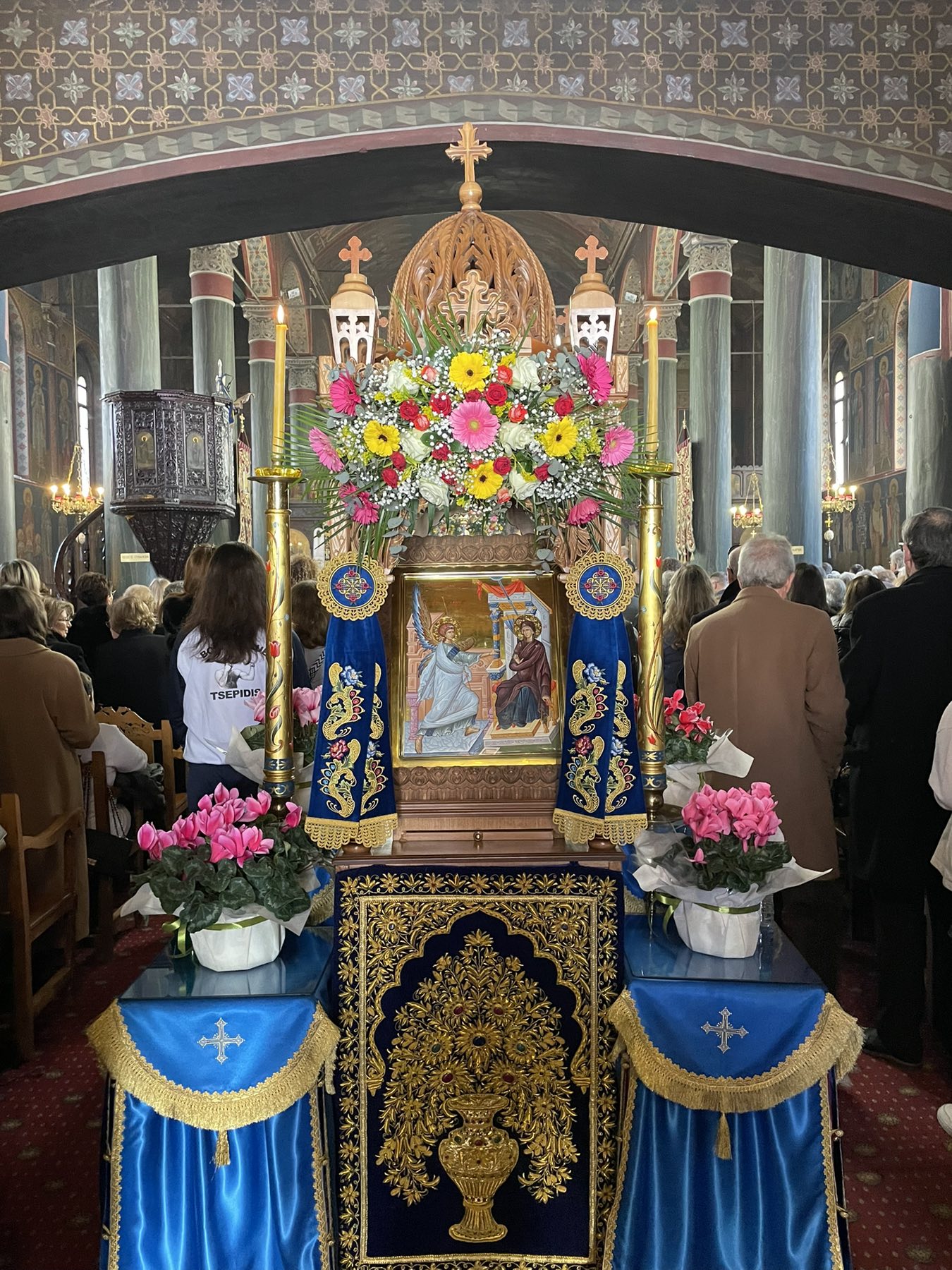 Ανήμερα της εορτής, από νωρίς το πρωί, πλήθος πιστών προσήλθε στον Ιερό Ναό για να συμμετάσχει στη Θεία Λειτουργία, συνεορτάζοντας διπλά: τόσο το γεγονός του Ευαγγελισμού της Θεοτόκου όσο και την εθνική επέτειο της Ελληνικής Επαναστάσεως του 1821.