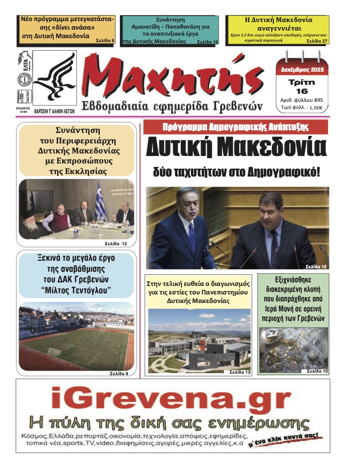 Πρωτοσέλιδο ΜΑΧΗΤΗΣ